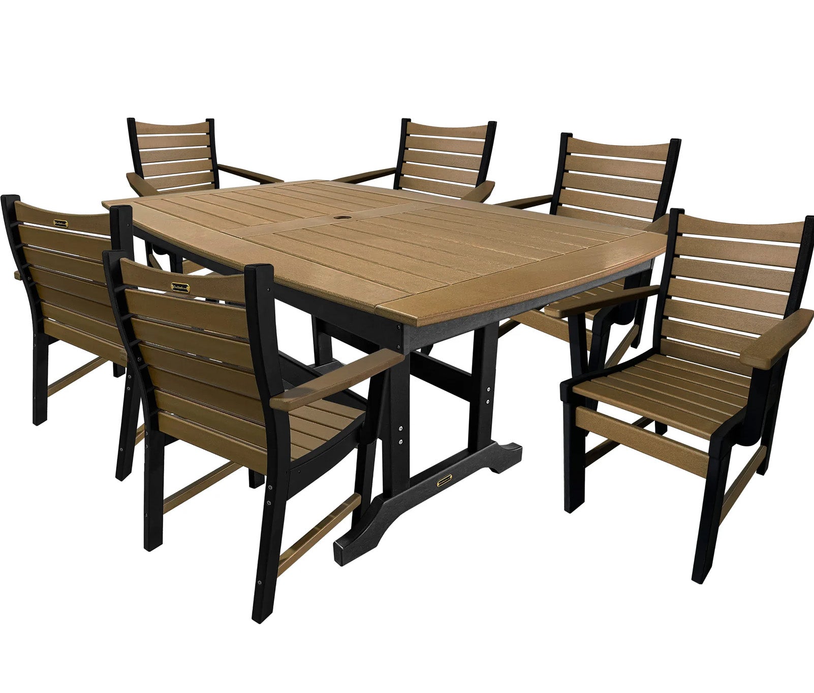 What is included: (8) Brookshire Dining Arm Chairs & (1) 72 to 101" Extension Dining Table With Umbrella Hole & Plug.