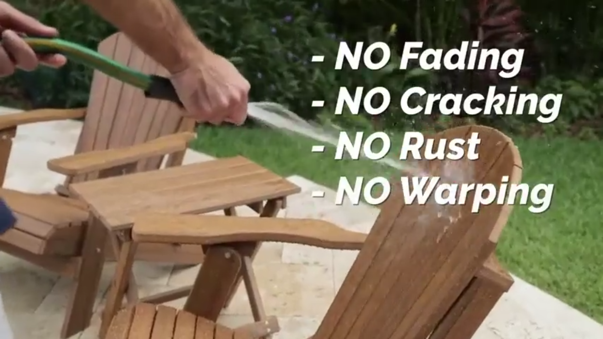 Unlike traditional wood, DuraWeather poly outdoor furniture is maintenance free. You won't have to go through vigorous efforts to stain, sand, and waterproof our material every year. Not only that! You won't have moldy, rotten, insect infested furniture. Our poly outdoor furniture resists these nasty culprits! The only wood we stand by for outdoor use is Teak Grade A only as it is best for outdoor protection from nature's harsh elements and insects.